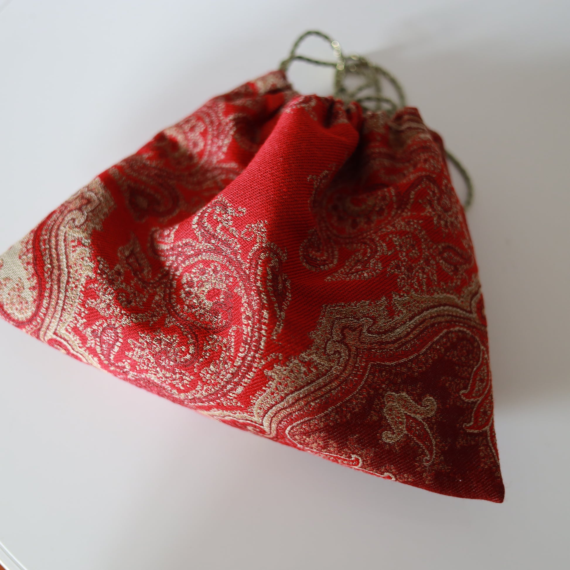 Bisaccia - realizzata a mano con un tessuto bellissimo di ETRO nella loro fantasia iconica Paisley in rosso e oro.