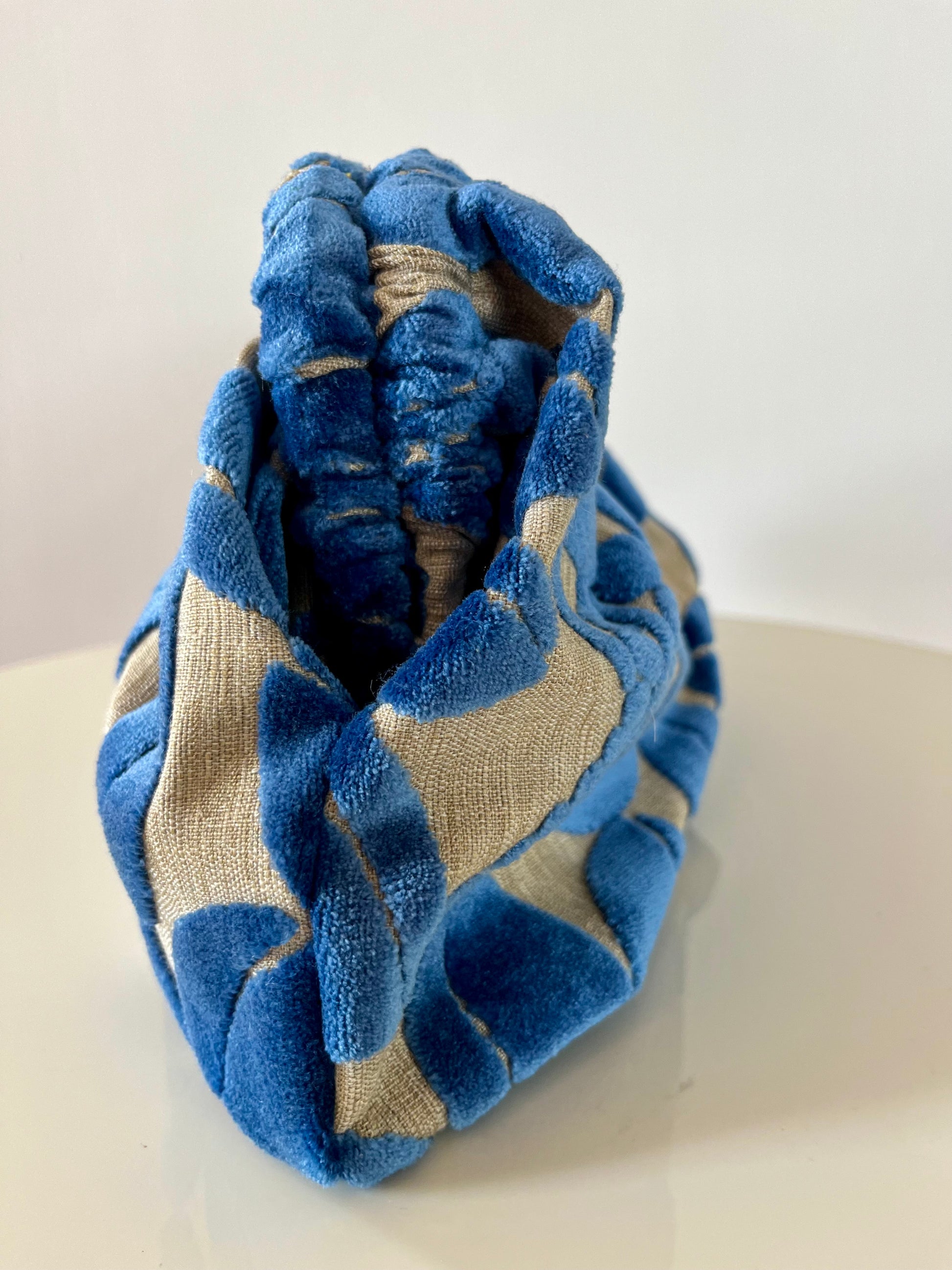 Clutch Standard in Lino e Velluto Varese Designersguild. In una fantasia floreale Calaggio in color beige e blu jeans.