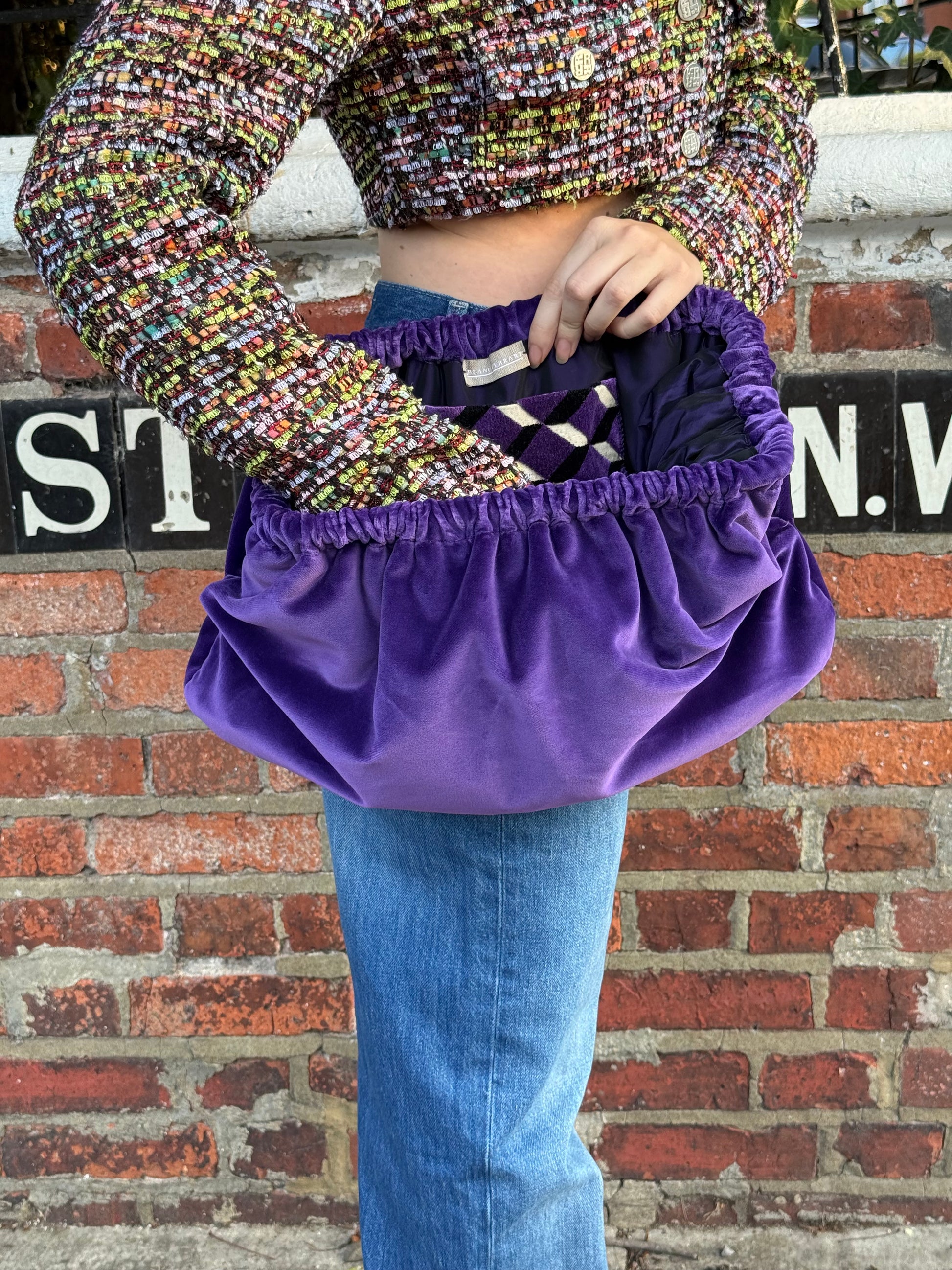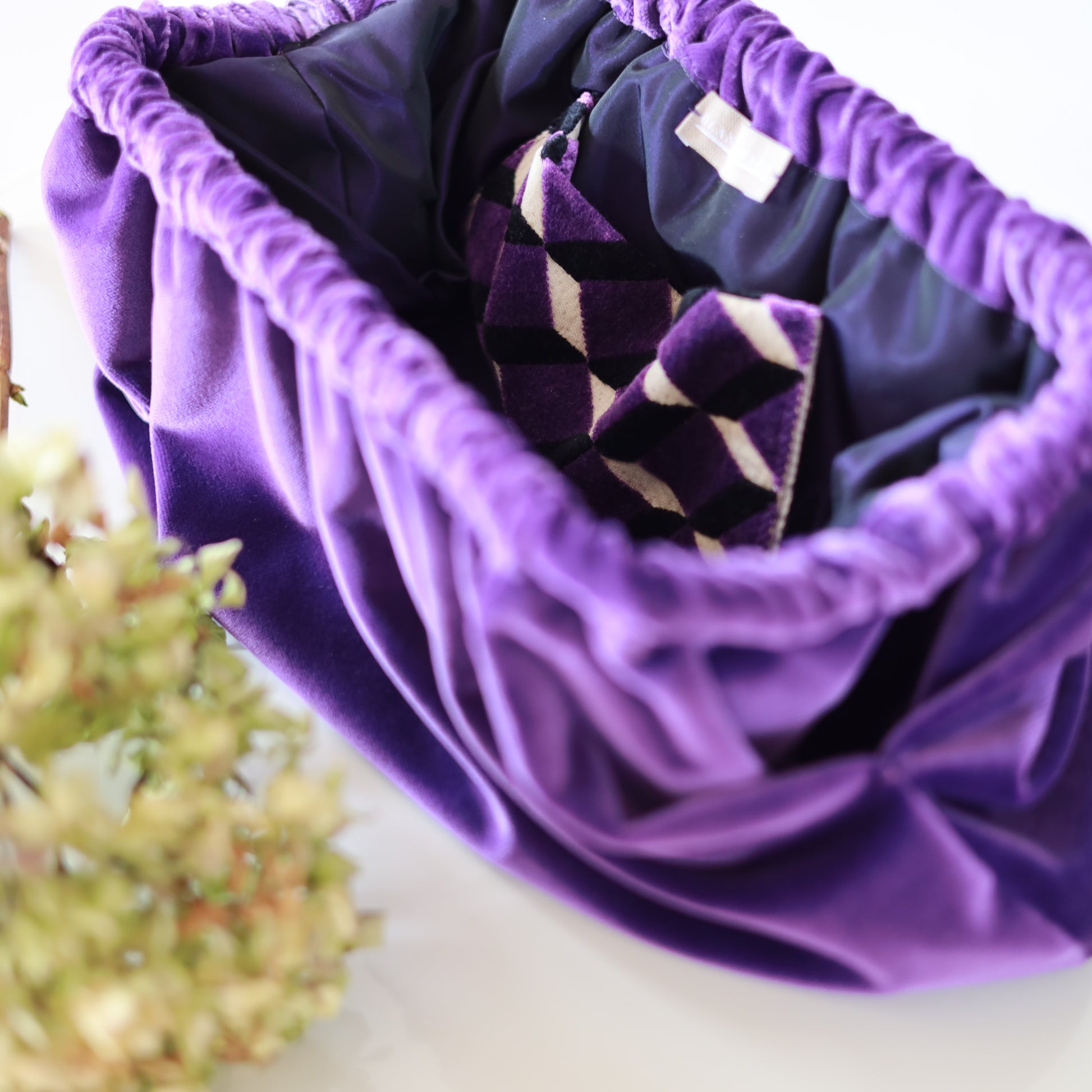 Large Clutch - in un tessuto morbidissimo e da un color viola luminoso in Velluto Designersguild.
