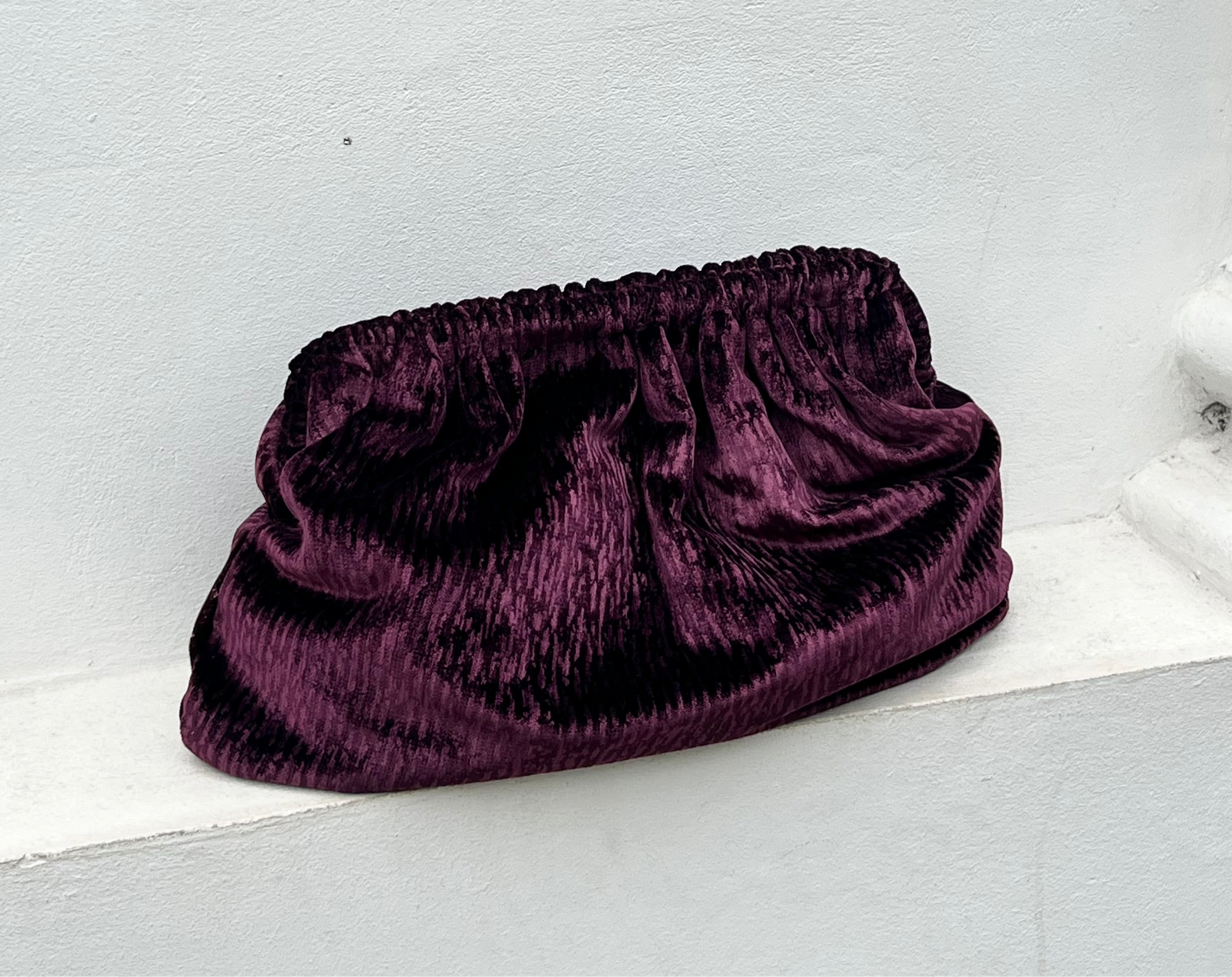 Large Clutch - in velluto Designersguild fantasia striata in una colorazione stupenda di vinaccia/burgundy.