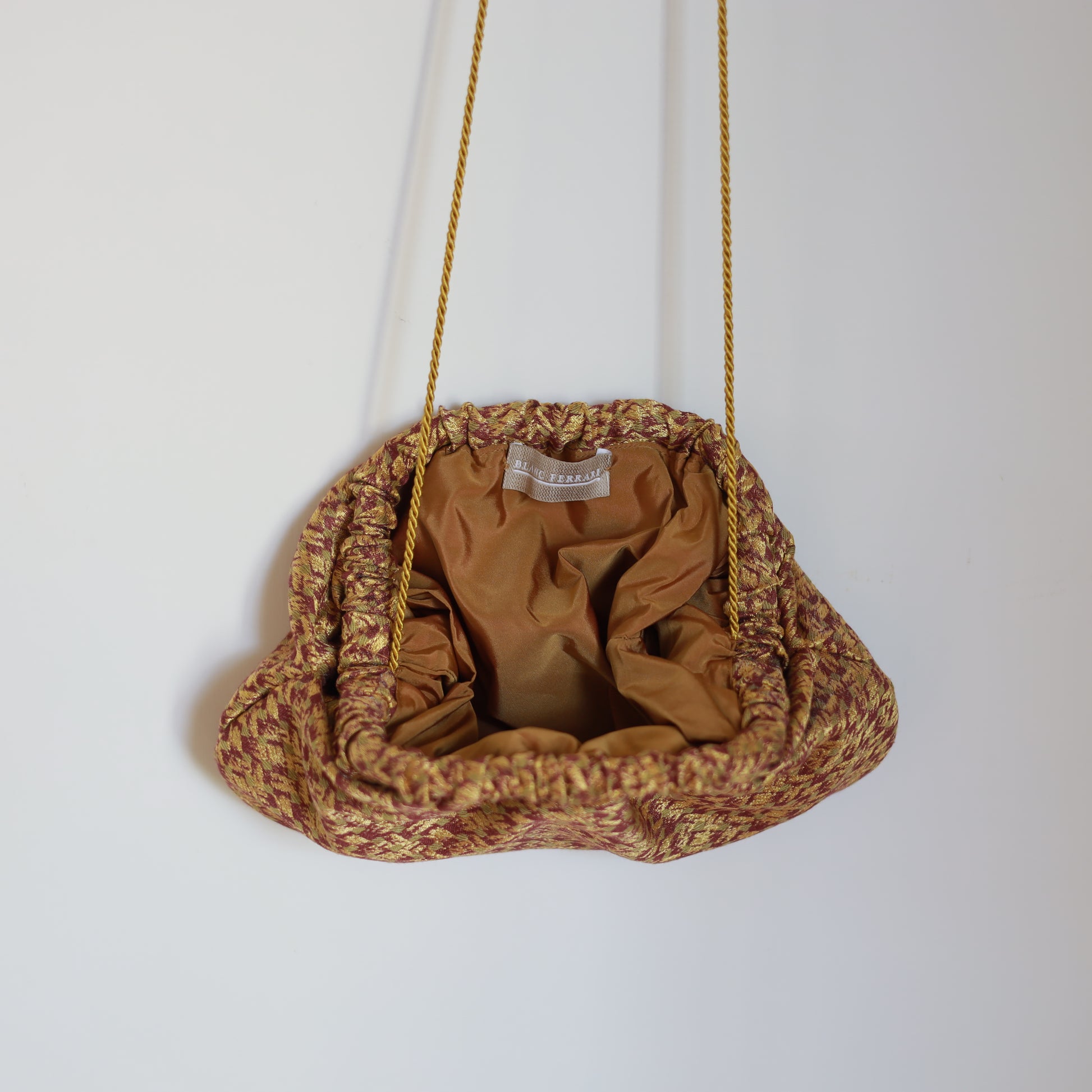 Interno in seta e tracollina oro in filo.