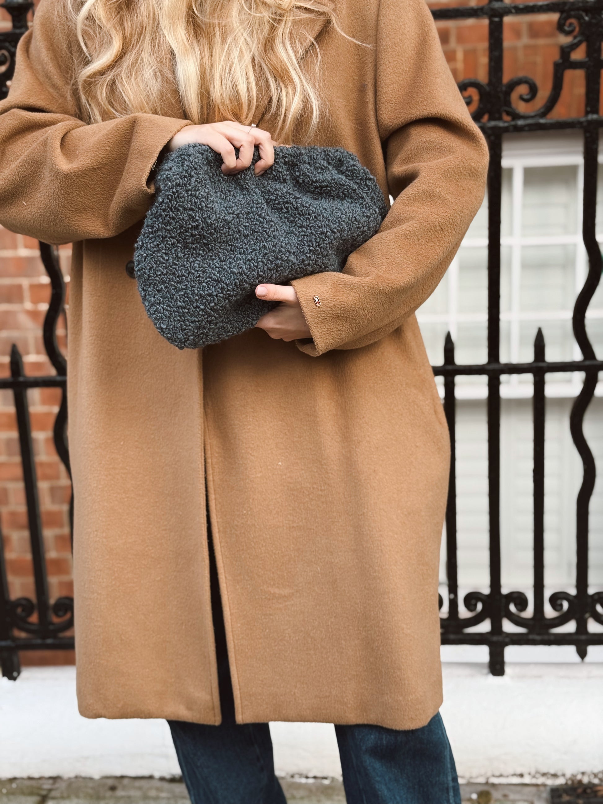 Clutch Standard - realizzata a mano con tessuto morbido in bouclé di Dedar Milano.
